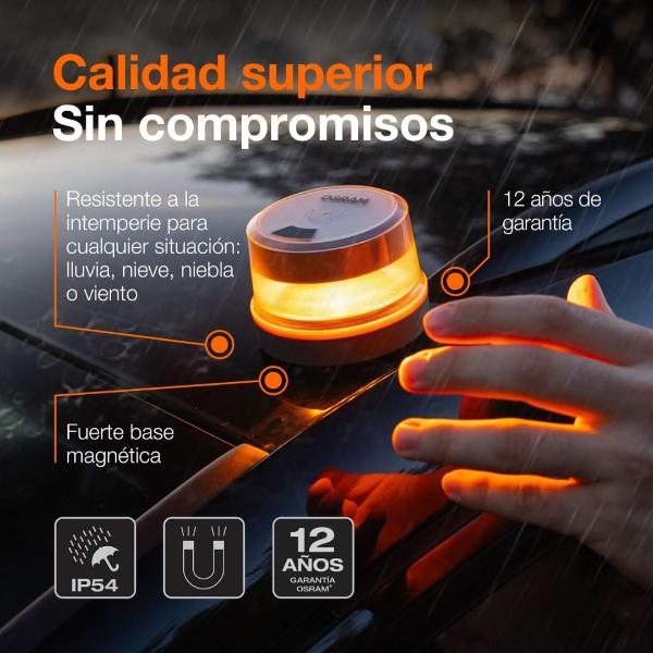 - Luz de aviso amarilla intermitente 360°, certificada DGT 3.0